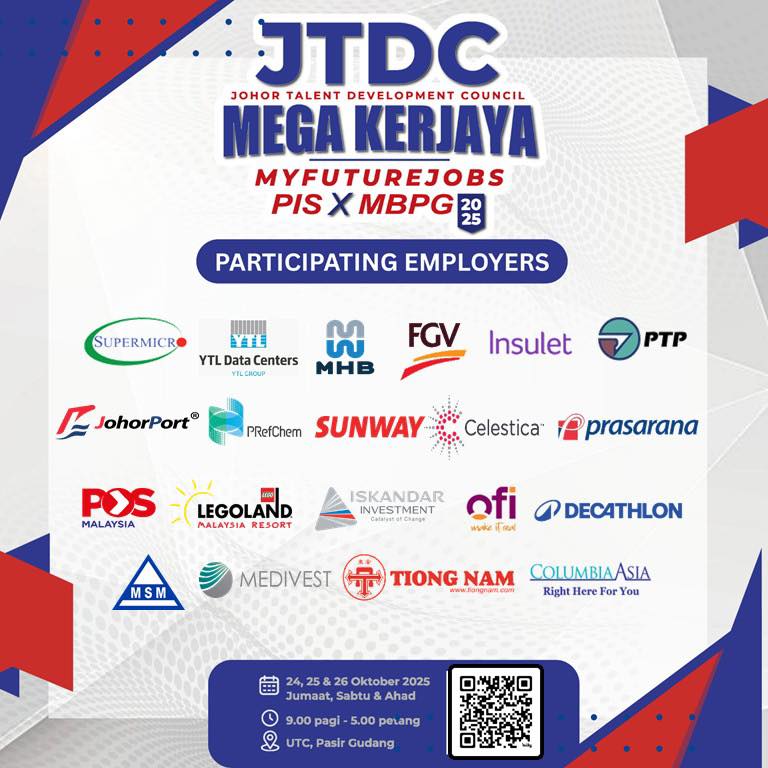 Datang beramai-ramai ke JTDC Mega Kerjaya MyFutureJobs x PIS x MBPG 2025 β karnival kerjaya terbesar yang menghimpunkan lebih 40 MAJIKAN TERKEMUKA hanya untuk anda!